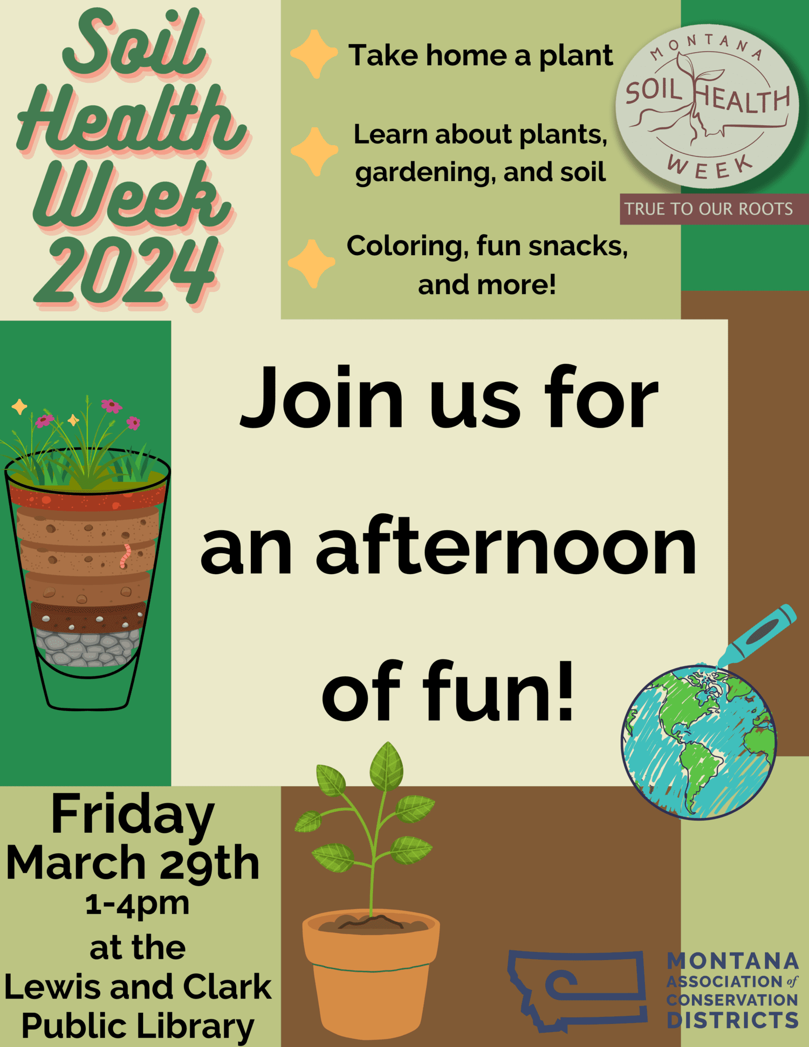 Come join MACD at the Lewis and Clark Public Library in Helena on Friday, March 29th at 1pm to celebrate Montana’s first ever Soil Health Week!