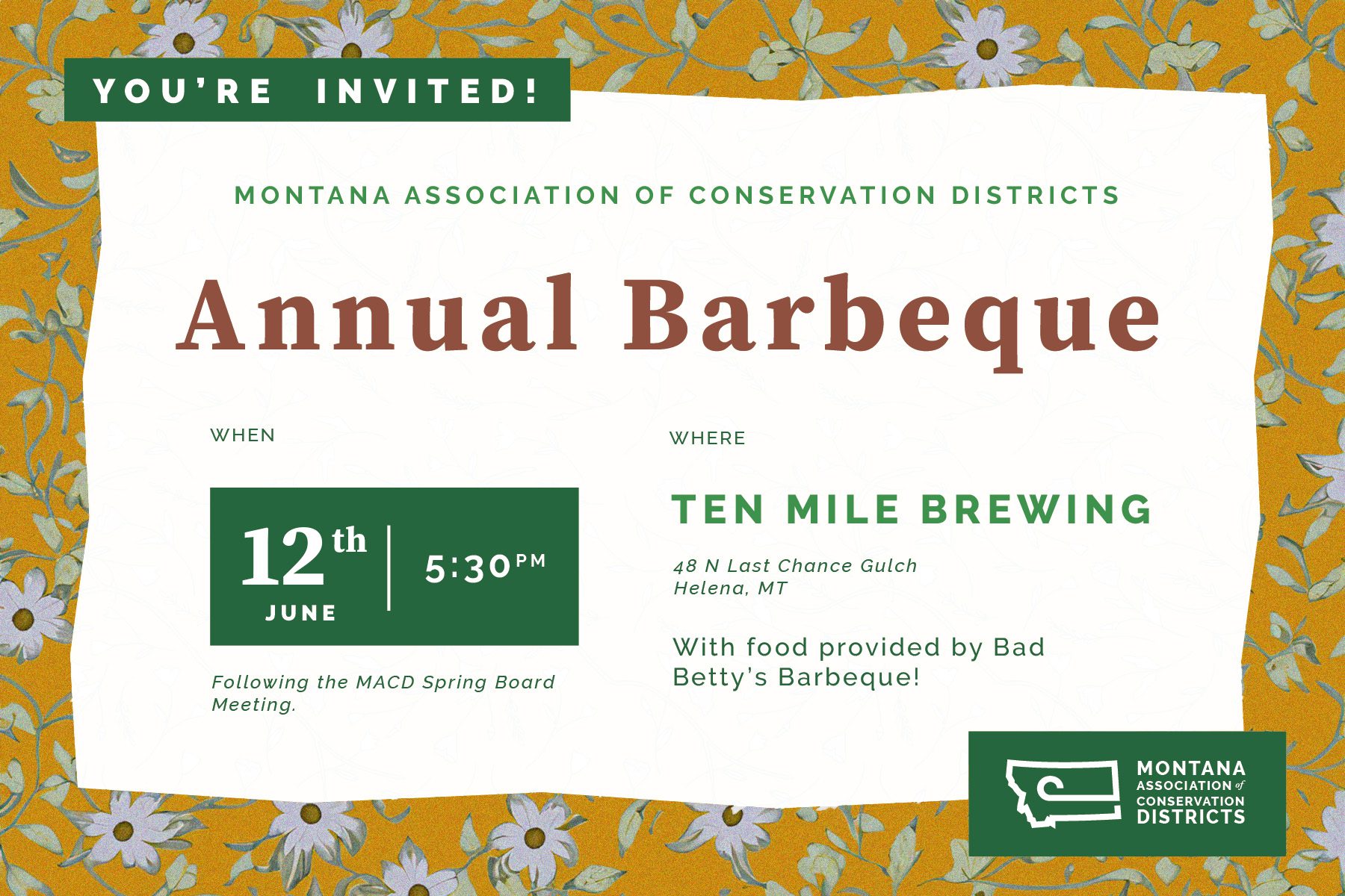 Following the MACD Spring Board Meeting you are invited to the Annual MACD Barbeque at Ten Mile Brewing, food will be provided by Bad Betty’s Barbeque.