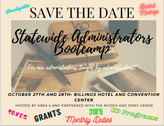 Statewide Administrators Bootcamp | Oct 27-28, 2022 Area 4 is hosting a Statewide Administrators Bootcamp October 27th and 28th 2022 in partnership with the MCDEO and DNRC CARDD. This is…